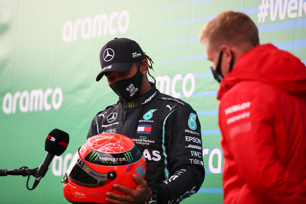 Pri príležitosti prekonania počtu víťazstiev Lewisom Hamiltonom dokonca daroval Britovi otcovu ikonickú červenú prilbu. „Takže také Michaelovo ‚fluidum‘ bude okolo Schumiho juniora stále. Sám navyše jazdí s helmou, ktorá sa nápadne ponáša na dizajn prilby jeho otca z 90. rokov,“ hovorí markizácky športový redaktor.