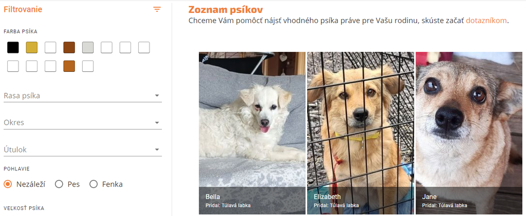 dočasnú opateru či adopciu. Používatelia tak nájdu na jednom mieste