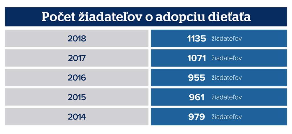 Minulý rok bolo v detských domovoch dokopy 4747 detí. Z nich sa náhradná rodinná starostlivosť hľadala 1516 deťom. Zvyšné deti žijú síce v detských domovoch, ale nemôžu byť v zozname na adopciu. Ich rodiča sú s nimi stále v kontakte.