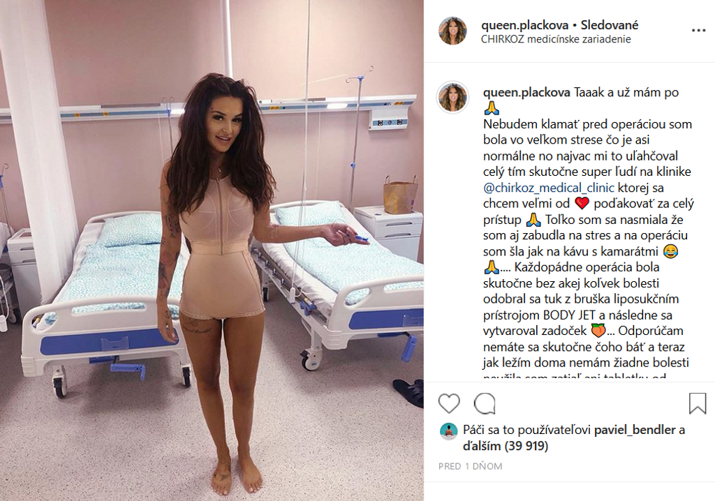 Zuzana Strausz Plačková je už po zákroku. Na súkromnej bratislavskej klinike si nechala špeciálnym prístrojom zväčšiť zadok tak, že jej z tela odobrali tuk, ten potom spracovali a následne jej ho pichli do pozadia.