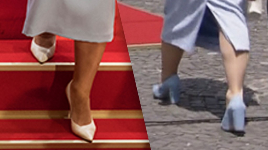 Kým v Redute mala svetlé lodičky ladiace s kabelkou, pri prehliadke mala už na nohách iné topánky. Svetlomodré lodičky, ktoré mali hrubší podpätok.