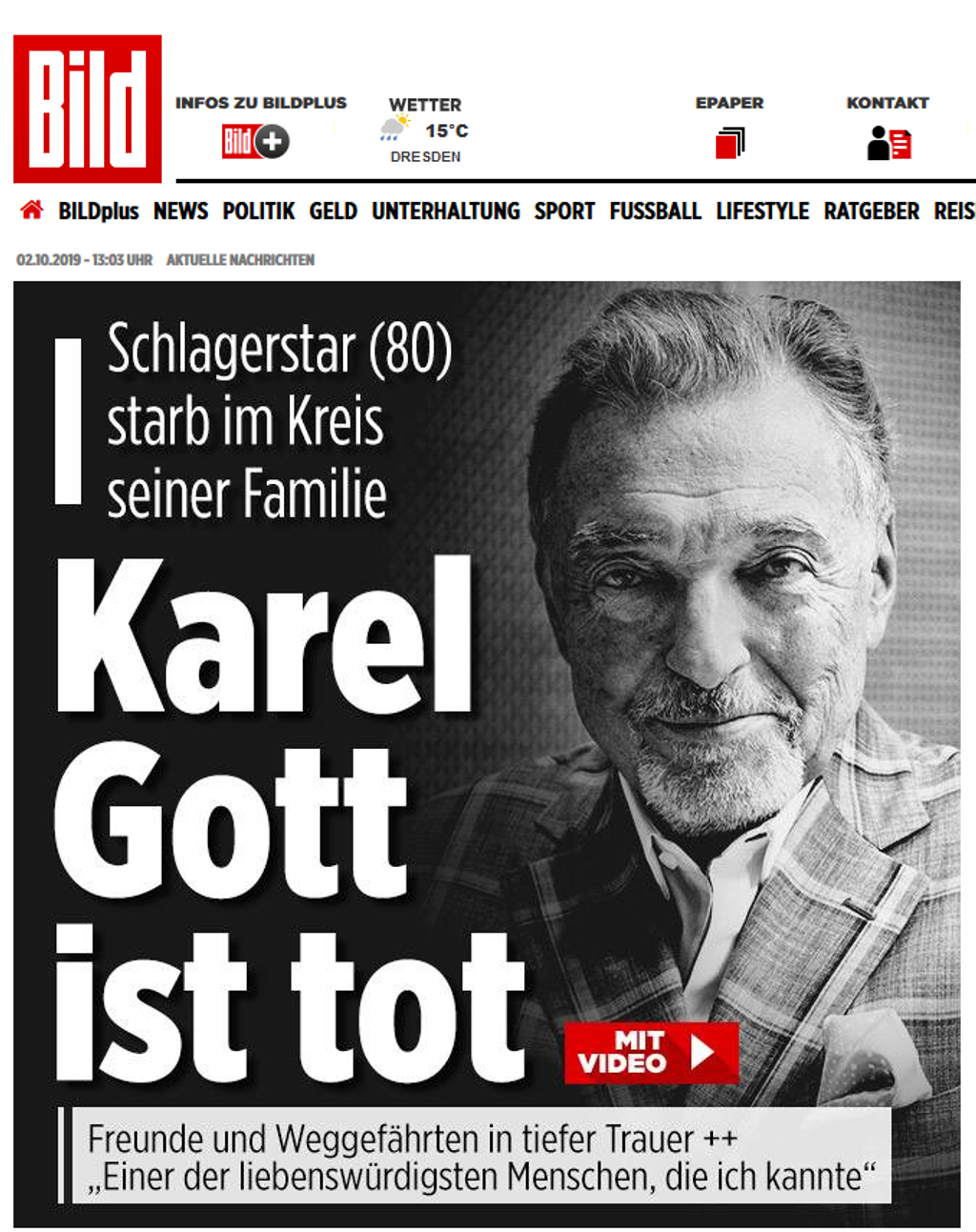 „S Karlom Gottom zomrel jeden z najväčších tenorov a spevákov šlágrov. Počas viac ako 60 rokov, ktoré strávil na pódiách, predal 50 miliónov albumov,“ uviedol server nemeckého denníka Bild.