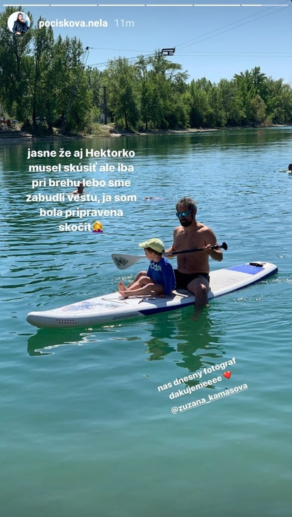 Paddle board vyskúšal aj Hektor, ktorý o mesiac a pol oslávi už štvrté narodeniny. A hoci nemal na sebe záchrannú vestu, Filip naňho dával pozor, boli len bezpečne pri brehu a ako Nela sama napísala, bola pripravená skočiť.