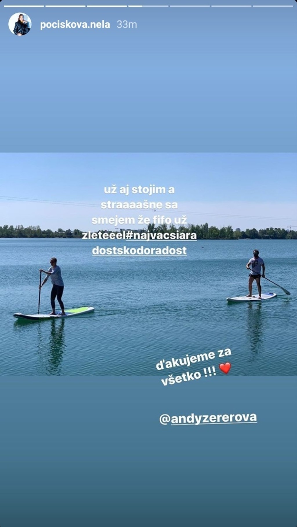 Okrem toho, že ju naplno zamestnáva domácnosť, je pre ňu a jej deti, ako pre všetkých v týchto neľahkých časoch, dôležitý pobyt na čerstvom vzduchu. Prostredníctvom príbehov na Instagrame sa najnovšie pochválila tým, že prvýkrát vyskúšala paddle boarding.