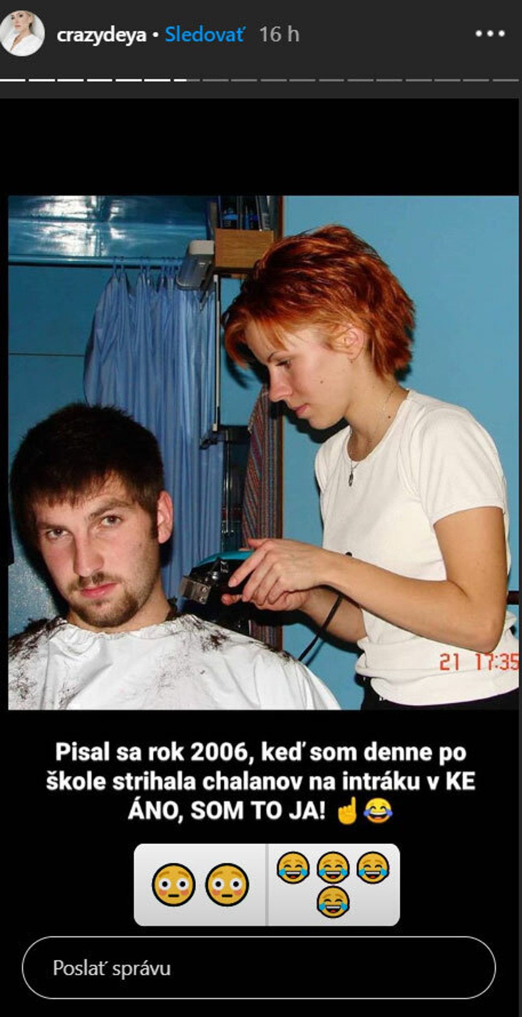 Na sociálnej sieti zverejnila fotografiu spred 14 rokov. Na internáte v Košiciach ju chlapci doslova obletovali, samozrejme aj preto, že po škole pravidelne trénovala s nožnicami a strojčekom v ruke. Na nedostatok záujemcov sa určite nemohla sťažovať. Vtedy ešte nosila krátke ryšavé vlasy, ale inak sa veľmi nezmenila. Čo poviete?