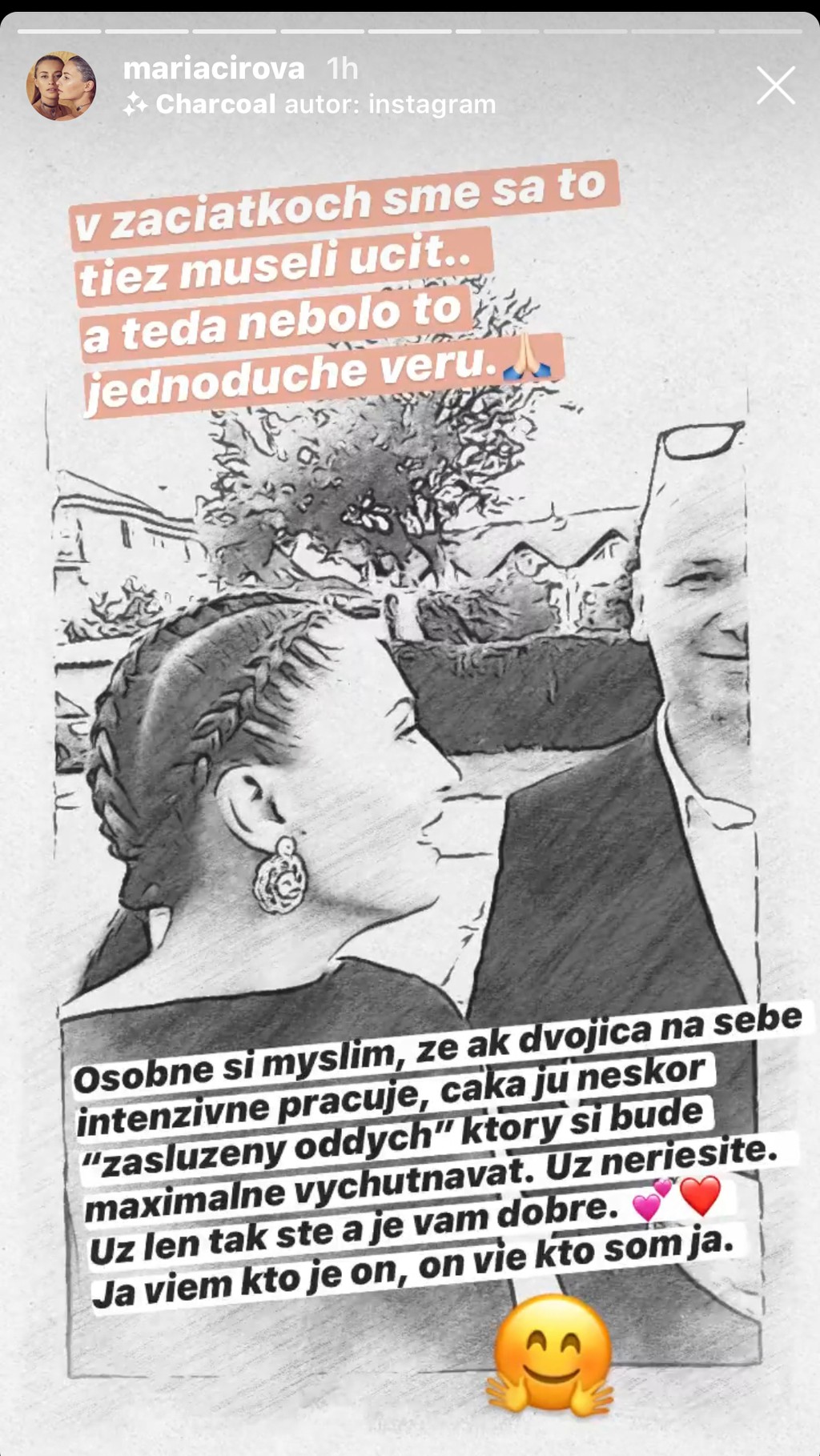 Speváčka je po uši zamilovaná aj po viac ako desaťročí. Podľa nej sa v každom vzťahu musia dvaja naučiť hovoriť o tom, čo ich trápi, aby mohli spolu napredovať. „V začiatkoch sme sa to tiež museli učiť a nebolo to veru jednoduché. Osobne si myslím, že ak dvojica na sebe intenzívne pracuje, čaká ich neskôr zaslúžený oddych. Už len ste a je vám dobre,“ prezradila Mária.