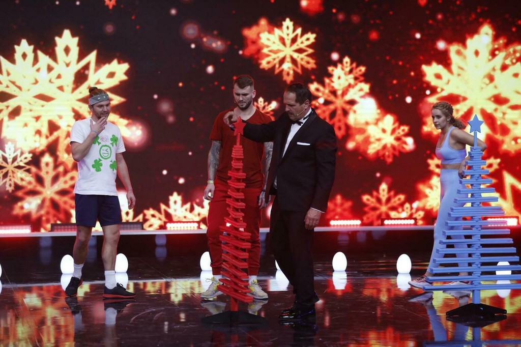 Druhou disciplínou bolo stavanie vianočného stromčeka. Každý z finalistov si najprv musel nachystať drievka svojej farby a podľa vzoru postavať drevenný stromček. Podobne ako v prvej disciplíne, najrýchlejší bol Lukáš. Ten svoj zelený strom postaval ako prvý. Tesne za ním skončil Heňo a Xénia. Obaja však mali chybu a tak ich čakal rozstrel. Evelyn im ukázala košík plný vajíčok a obaja museli uhádnuť ich počet. Bližší tip mala Xénia a tak získala bod.