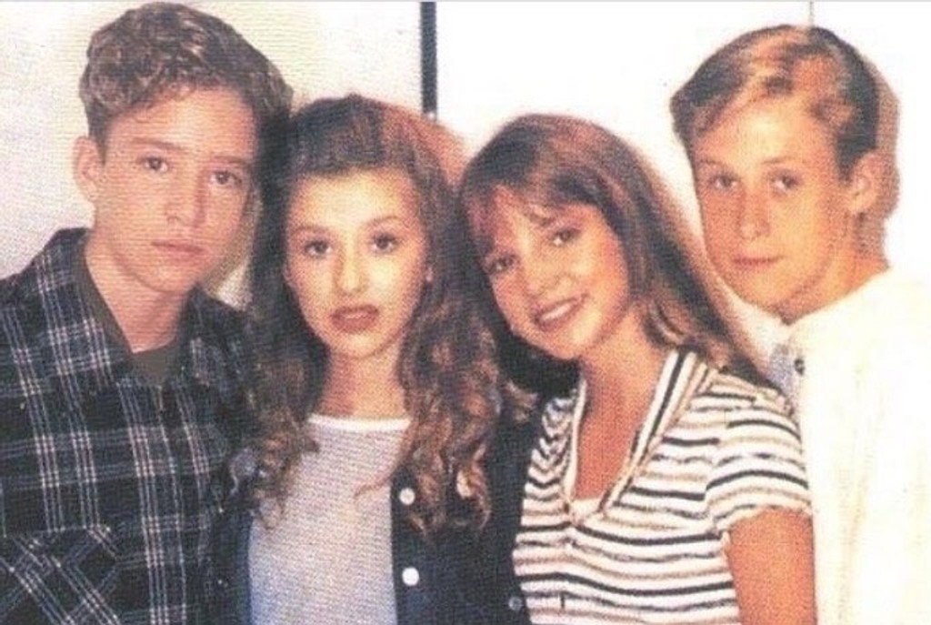 Na fotke zľava: Justin Timberlake, Christina Aguilera, Britney Spears a Ryan Gosling.