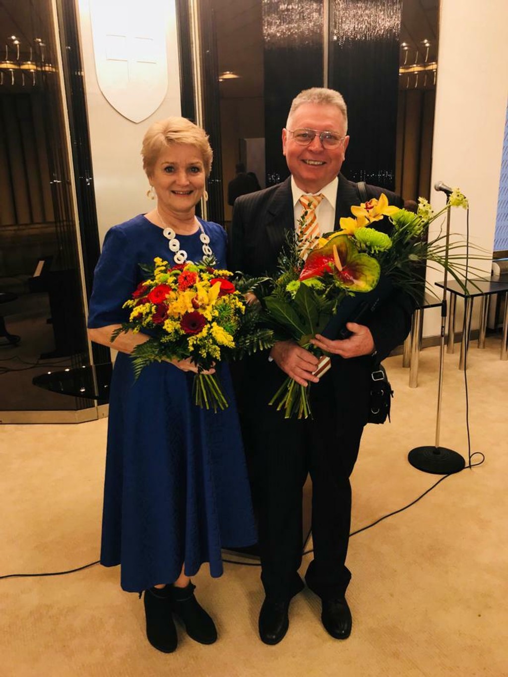 Štefan Mandžár na zábere z udeľovania cien Literárneho fondu v roku 2018 s manželkou Ľudmilou.