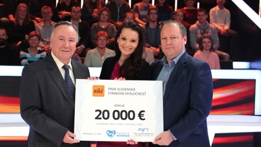 Súčasťou mikulášskeho vydania Veľkej TV Hry bola okrem veľkých výhier aj nemenej dôležitá udalosť. Niké ako líder medzi stávkovými kanceláriami na Slovensku si uvedomuje svoju povinnosť podeliť sa o úspech a radosť aj s tými najodkázanejšími a najmenšími. Počas sobotňajšieho podvečera tak prostredníctvom generálneho riaditeľa, Doc. Ing. Otta Bergera, CSc., prispela Niké na konto Nadácie Televízie Markíza sumou 20 000 eur. „Našu Hru o Niké sme vytvorili pre tri skupiny ľudí - pre samotných výhercov, ako zábavný program pre televíznych divákov, no predovšetkým pre tých, ktorí potrebujú pomoc, a teda deťom zo sociálne slabších rodín," potvrdil Otto Berger motívy vzniku súťaže a odovzdal šek do rúk generálneho riaditeľa TV Markíza Matthiasa Setteleho. Ten v mene detí, projektov a inštitúcií, ktoré ich realizujú vyjadril úprimné poďakovanie. Hra o Niké tak podľa svojho motta mení život nielen výhercom, ale aj tým, ktorí bojujú o život či zdravie!