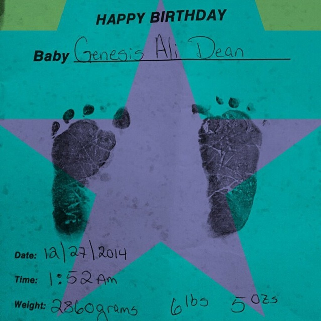 Speváčka oznámila narodenie svojho syna prostredníctvom sociálnej siete Instagram, kde zároveň zverejnila fotku odtlačkov Genesisových chodidiel.