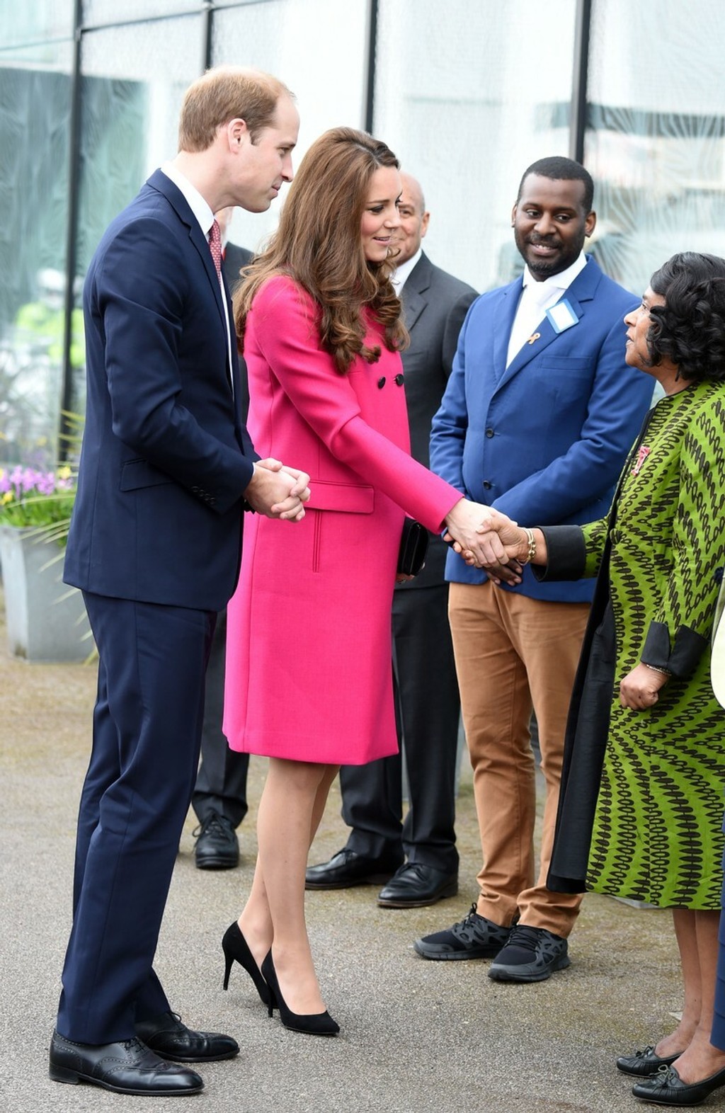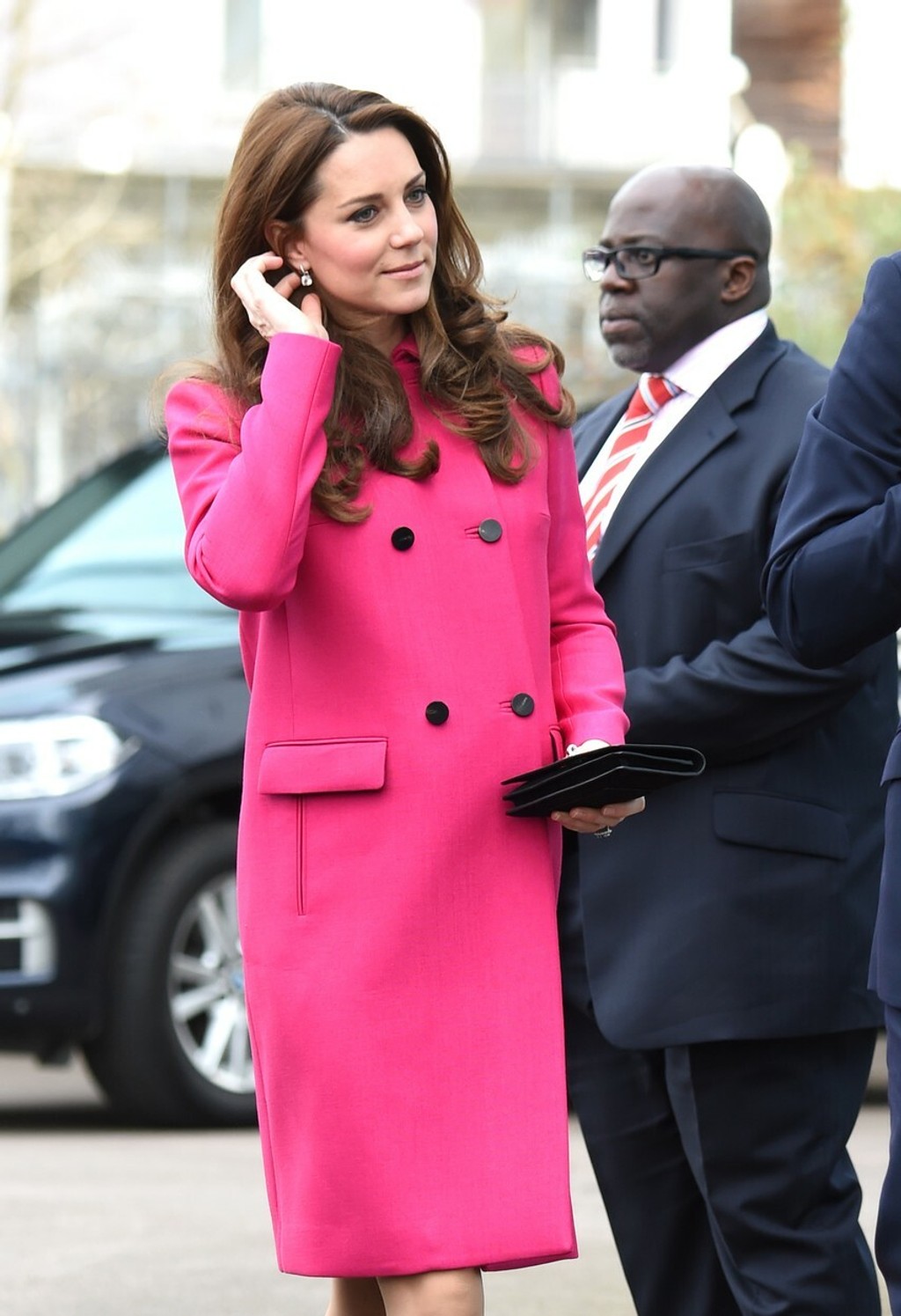 Kate na poslednej oficiálnej návšteve pred pôrodom zažiarila v tmavo ružovom kabáte.