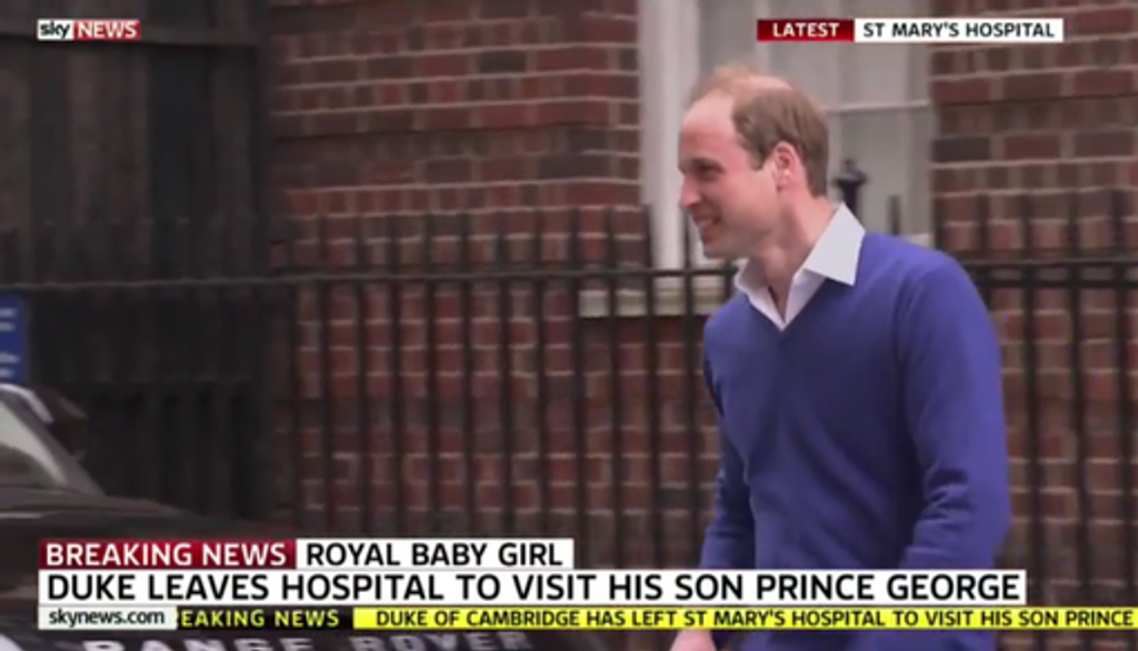 Za jasotu prizerajúcich sa opustil britský princ William londýnsku pôrodnicu, čoskoro sa však vrátil so synom Georgeom, aby mu predstavil novorodenú sestru. "Som veľmi šťastný," povedal reportérom a veľkému davu fanúšikov.