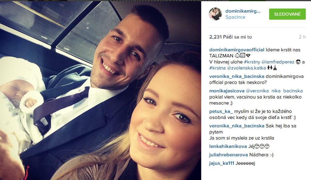 Speváčka Dominika Mirgová žiari šťastím. Po svojom boku má milovaného manžela Peťa, s ktorým sa tešia z prvého prírastku. Ich synček Peťko im rastie ako z vody. Dominike úloha maminy náramne pristane. Dôkazom sú aj snímky, ktoré zverejňuje na sociálnej sieti.