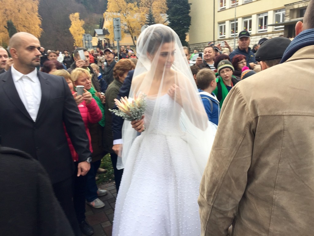 Nevesta bola nádherná. Biele svadobné šaty jej navrhol slovenský módny návrhár Martin Hrča. Všimli sme si, že na prste mala snubný prsteň s veľkým kameňom. Hostina a zábava prebiehala v luxusnom hoteli na Štrbskom plese. Tam sa manželia presunuli helikoptérou a kočom.