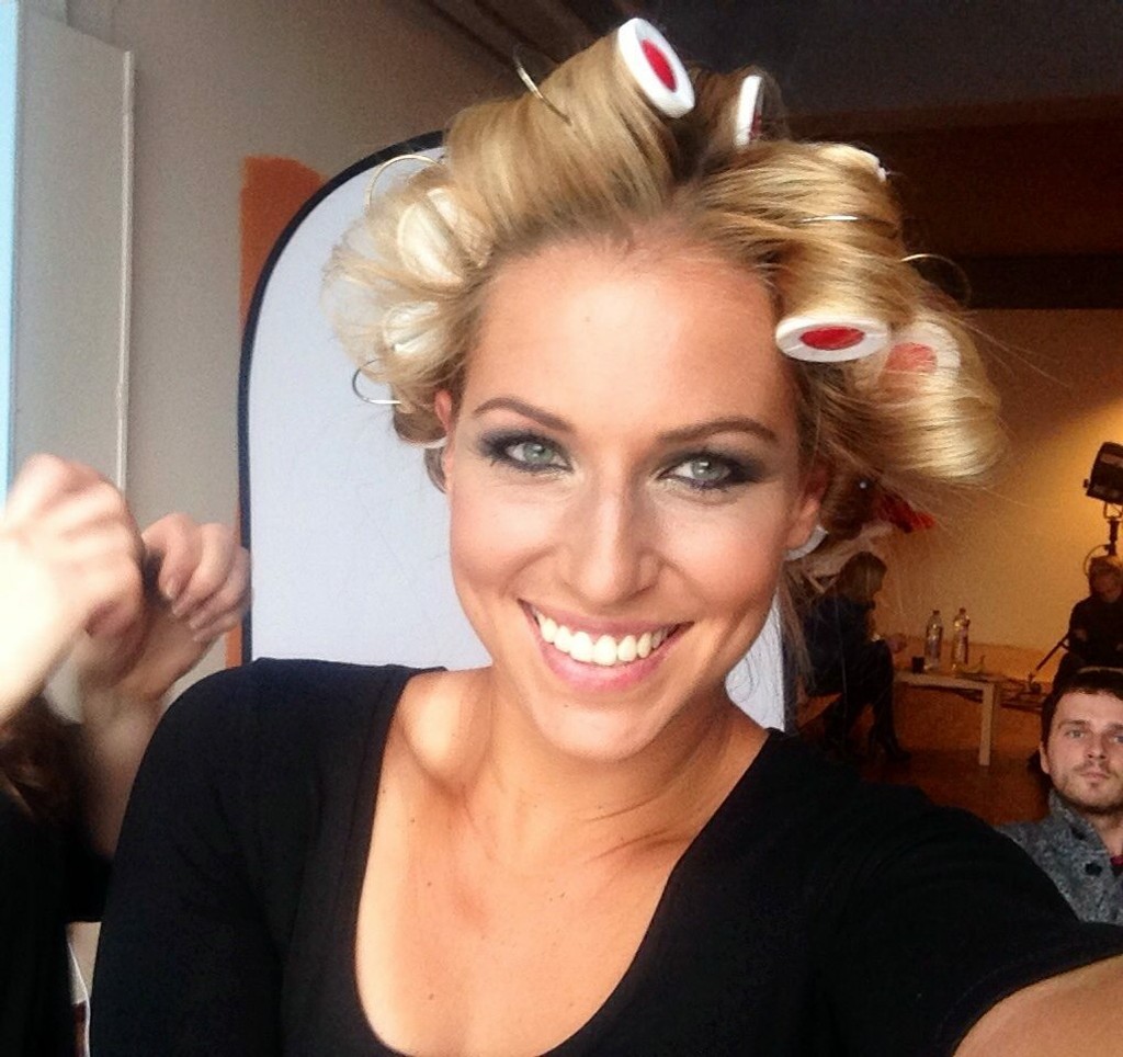 Ukázala sa v bielom tope a sukni, kde veľmi pekne vynikla jej vyšportovaná postava. "Bolo to veľmi cool a veľmi "fashion", už sa teším na výsledok," opisovala príjemné pocity Dominika. Na Dominikinu tvár sme zvyknutí, aj keď je nenamaľovaná, ale s farbičkami sa zvýrazní jej prirodzená krása a to teda naozaj stojí za to! Zvečnila sa aj s nátačkami na hlave...