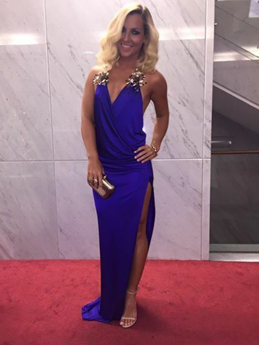 Dominika zvolila rafinované šaty v kráľovskej modrej s odvážnym výstrihom.