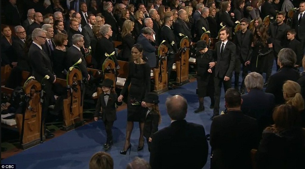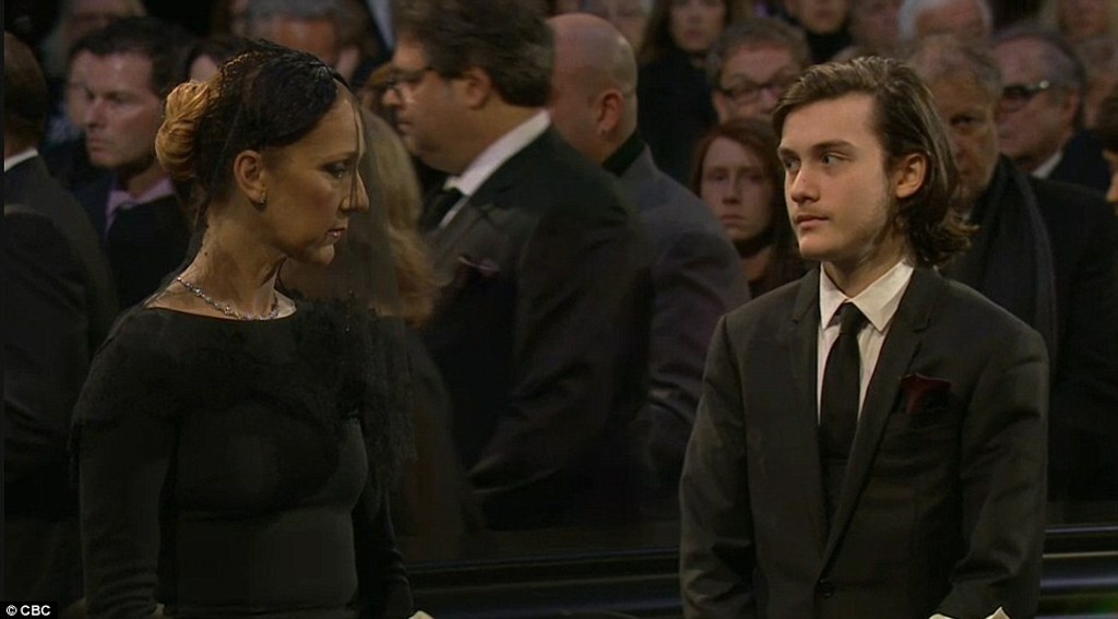 Celine pristúpila k manželovej rakve, položila naň čiernu káliu. Utešoval ju syn René-Charles. Smútočný príhovor mal Reného syn z predchádzajúceho manželstva Patrick, po ňom nasledoval René -Charles.