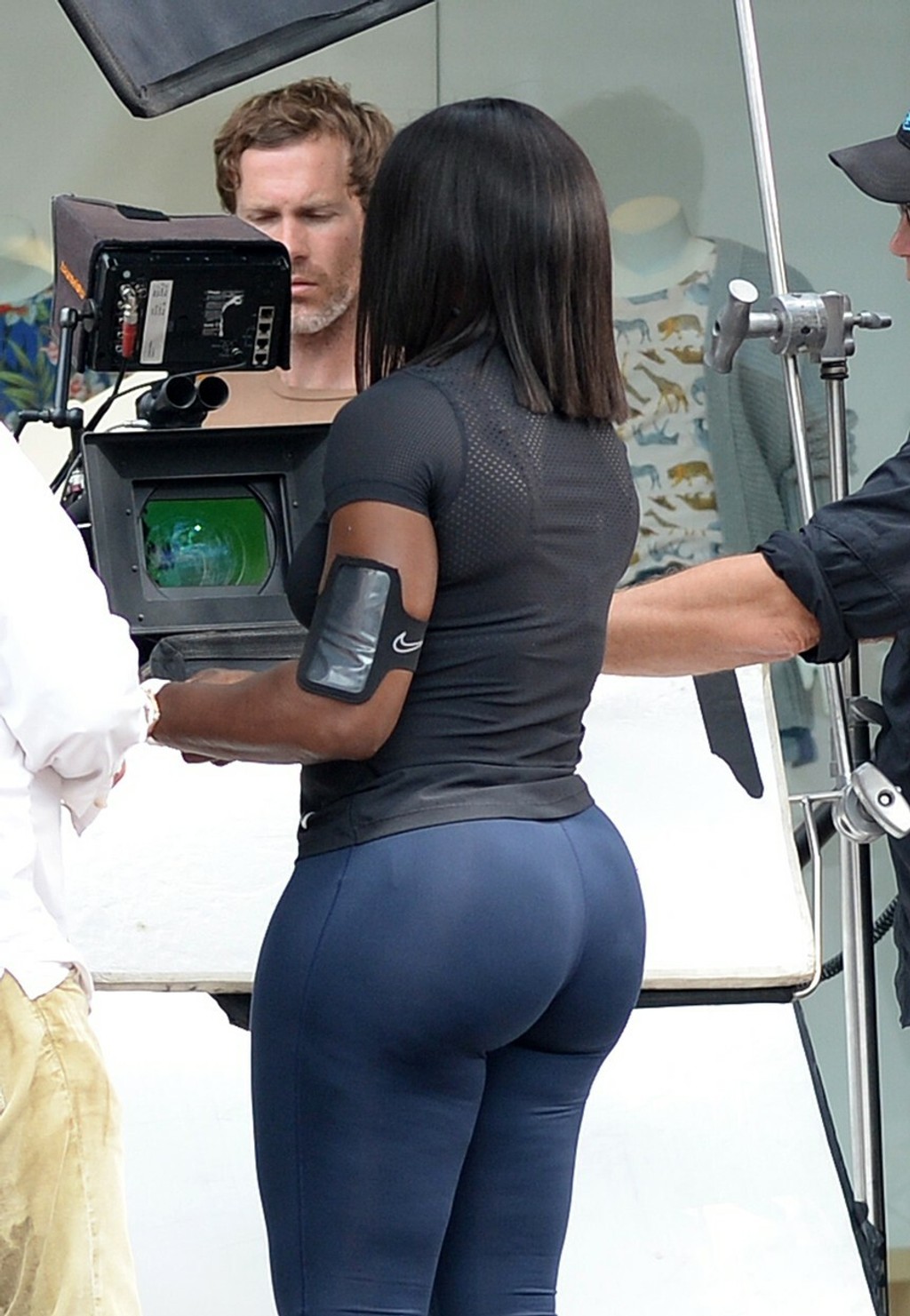 Tridsaťštyriročná tenistka nakrúcala v Coral Gables na Floride. Serena si tak pred kamerami zabehala v obtiahnutom úbore, ktorý len zvýraznil jej vypracované telo. Milovníci veľkých ale pevných pozadí si pri týchto fotografiách prídu na svoje.