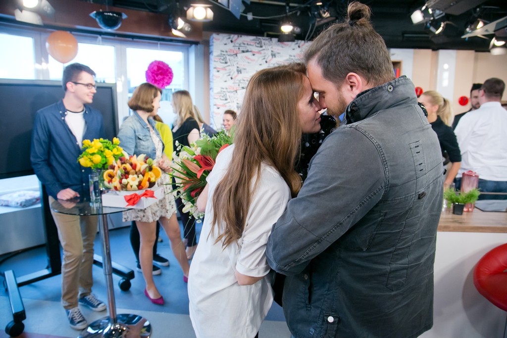 Na oslávenkyňu sa potom vrhli kolegovia. Lenka bola dojatá k slzám. Jej najväčším prekvapením však bol 4-ročný syn Riško. Tento okamih si dostal každého.