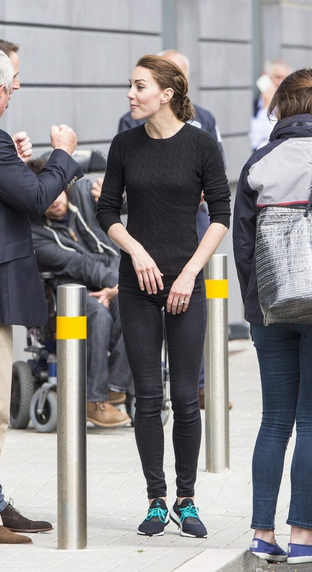 Vojvodkyňa z Cambridge mala náročný deň. Po tom, čo súťažila na jachtárskych pretekoch po boku najúspešnejšieho olympijského námorníka Bena Ainsliea, sa objavila v meste Portsmouth v ležérnom outfite. Na sebe mala obtiahnuté čierne džínsy, čierny sveter a športové tenisky. Vlasy si upravila do copu a na tvári mala len minimum mejkapu, píše denník DailyMail.