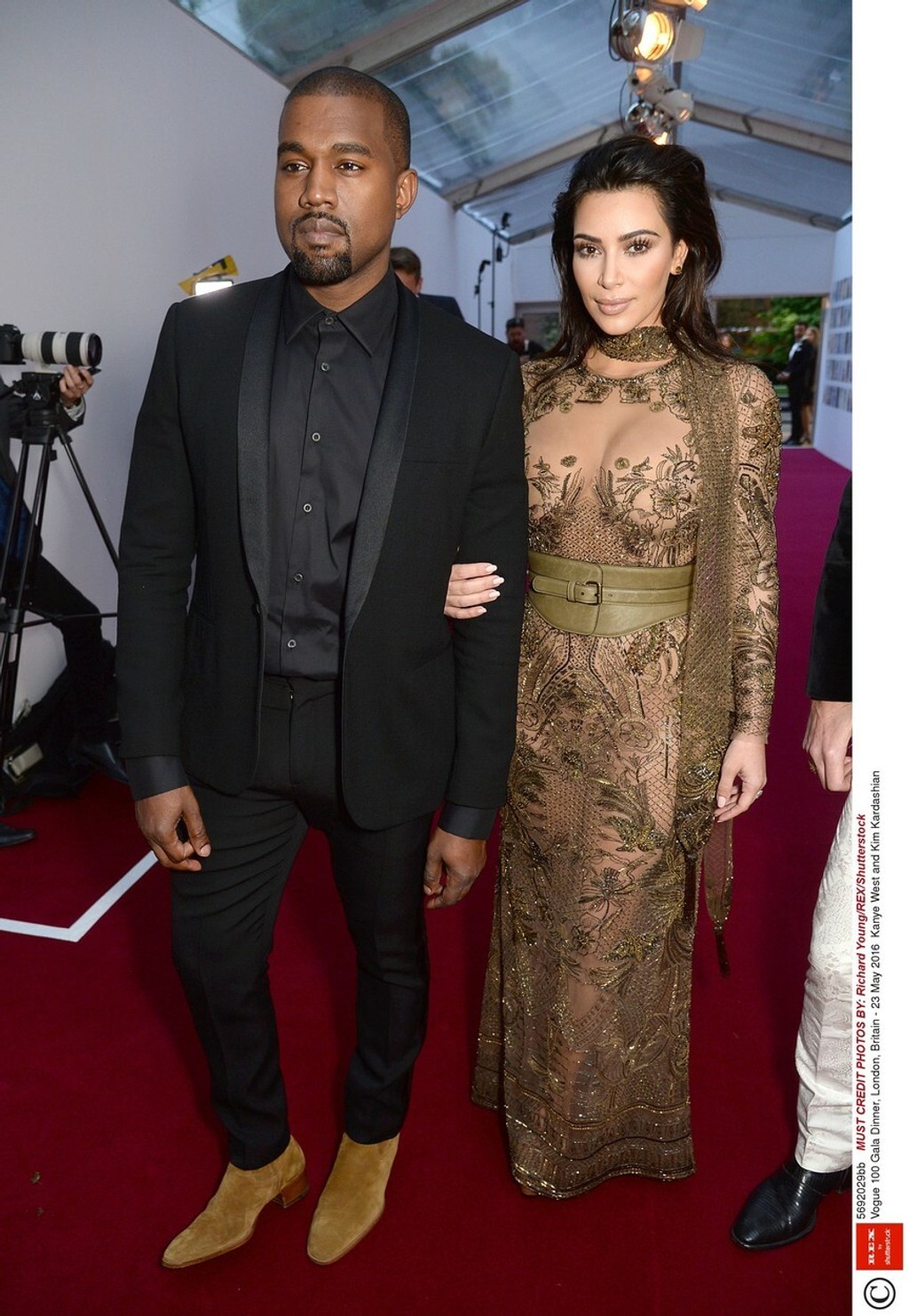 Do Londýna si obliekla veľmi rafinované šaty s čipkou. Vyzeralo to tak, ako keby pod nimi nič nemala. Ak sa ale lepšie pozriete, večerné šaty majú minimálne telovú podšívku vďaka ktorej pôsobia sexy, no nie vulgárne. Či má Kim niečo pod podšívkou, to už je otázne. Kanye bol celý v čiernom, len na nohách mal tie isté topánky ako na Met Gala.