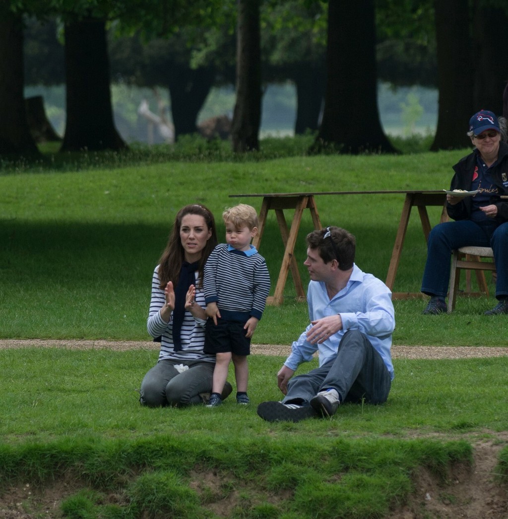 George bol oblečením zladený s mamou. Vojvodkyňa z Cambridge Kate Middleton si obliekla neformálny pruhovaný pulóver a námornícky sveter mal na sebe aj malý princ.