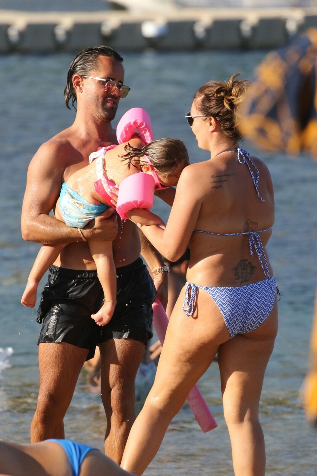 Mladšia dcéra britského automobilového funkcionára, podnikateľa a vládcu F1 Bernieho Ecclestona dovolenkuje na gréckom ostrove Mykonos s manželom Jayom Rutlandom a dvojročnou dcérkou Sophiou.