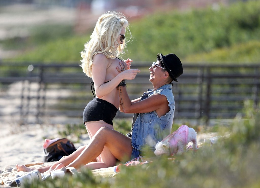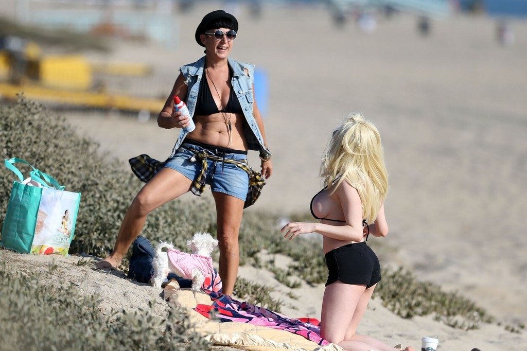 Už nevie, čo so sebou alebo ako by na seba upozornila. Hoci je vydatá za hviezdu snímky Zelená míľa, Courtney Stodden nafotili na pláži v Santa Monice s neznámou oveľa staršou ženou. Nešlo o žiadnu kamarátku, keďže tieto dve predvádzali na osuške poriadne horúce divadielko. Neznáma brunetka mladučkej Courtney obchytkávala silikónmi vylepšené poprsie, bozkávali sa a váľali sa po sebe.