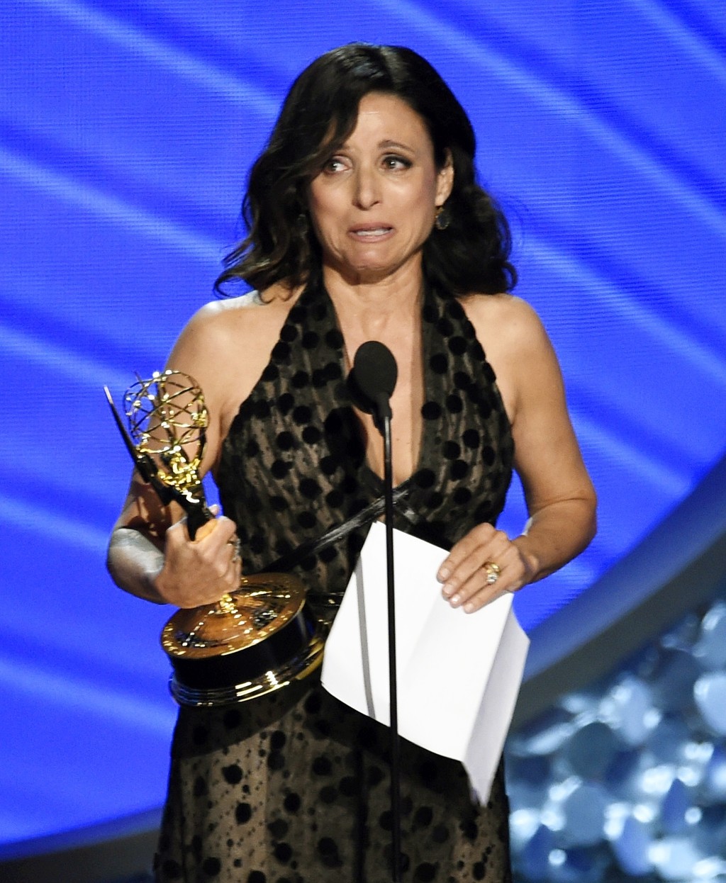 Za všetko mohla emotívna ďakovná reč herečky Julie Louis-Dreyfus. Päťdesiatpäťročná americká herečka si odniesla cenu za najlepší ženský herecký výkon v komediálnom seriáli Veep, kde stvárňuje Selinu Meyer.