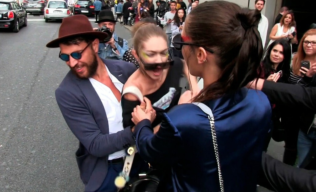 Modelka odchádzala z prehliadky milánskeho Fashion Weeku spolu so sestrou Belou, keď sa na ňu vrhli fotografi aj fanúšikovia. Gigi počas cesty k autu ochotne pózovala a s fanúšikmi si robila selfie. V tom ale za ňou prišiel neznámy muž v klobúku. Gigi zdvihol do vzduchu, čo sa jej nepáčilo.