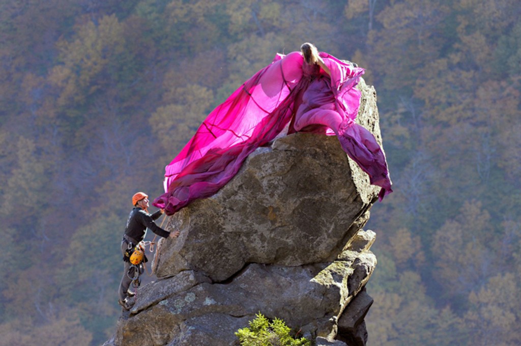 Modelka Kristina Marie Folcik-Welts zažila netradičné fotenie. Pre unikátne snímky sa nechala ošľahávať vetrom a fotiť na skale v americkom národnom parku Franconia Notch v štáte New Hampshire. Samozrejme, aj vietor urobil pri fotení službu.