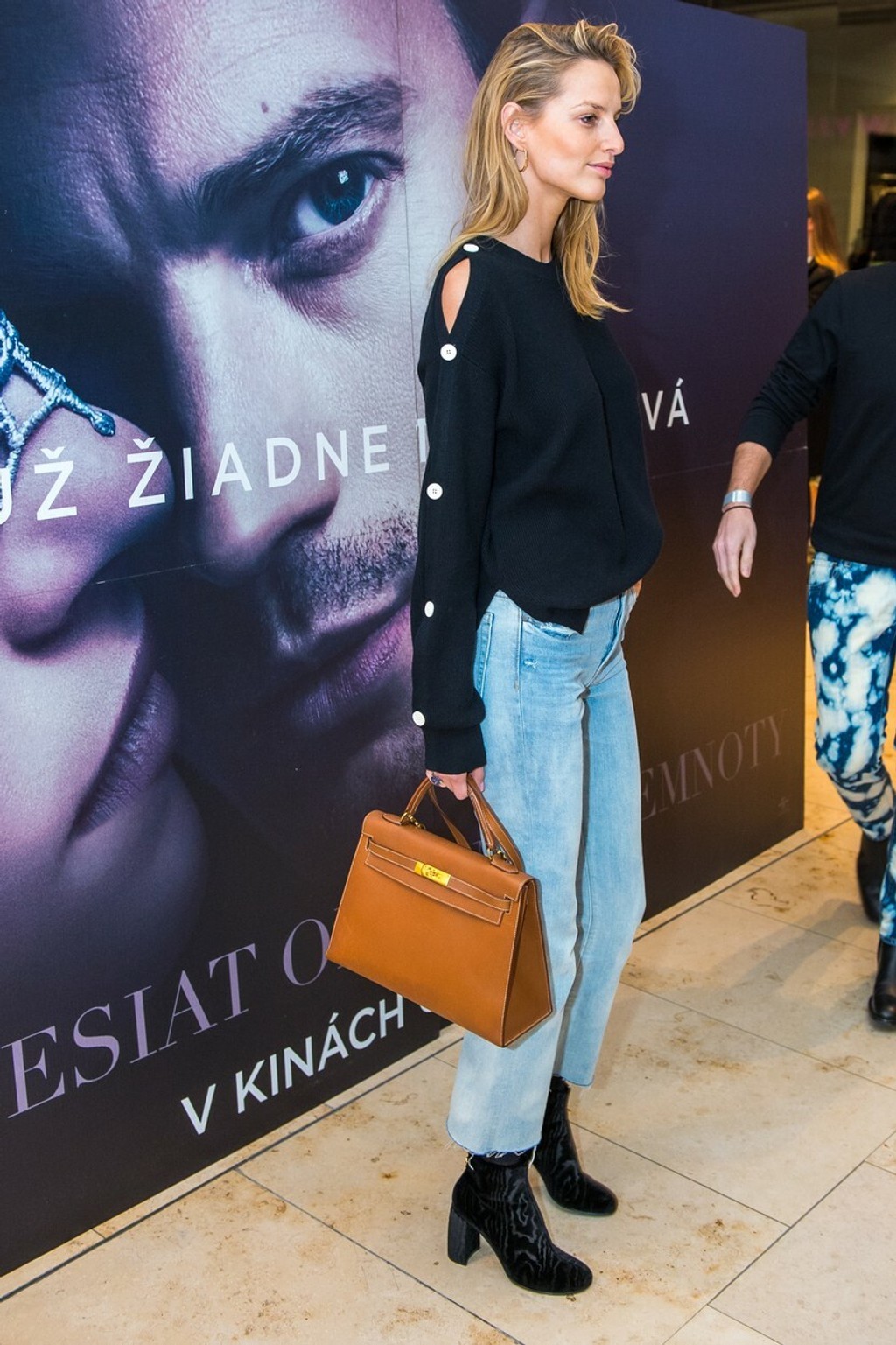 Topmodelku je zbytočné hodnotiť. Miša dobre vie, čo sa nosí a čo jej najviac pristane. Pri ležérnej akcii, akou návšteva kina je, nepotrebuje pútať pozornosť vyzývavým outfitom, ani výrazným líčením. Opäť vsadila na kvalitné kúsky. Za jej šatník by mnohé dámy „vraždili". Spoločnosť jej robil dobrý kamarát Braňo Bruno Ciberej.