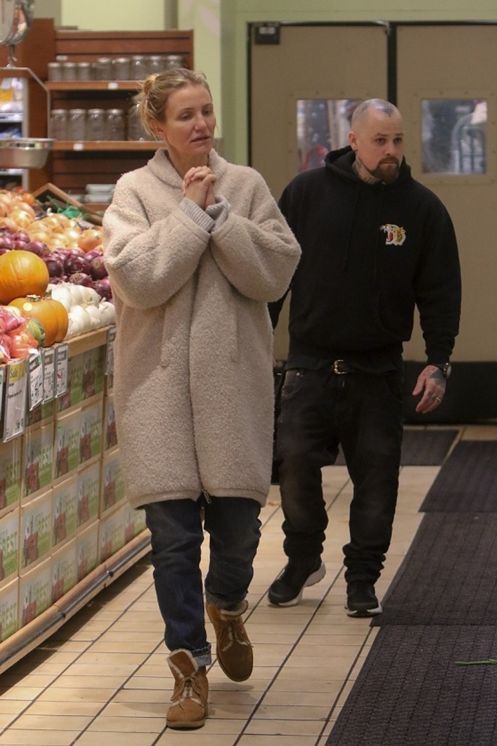 Spoznali by ste ju? Americká herečka Cameron Diaz (44) sa vybrala bez mejkapu na nákupy do potravín v kalifornskom Beverly Hills. Spoločnosť jej robil o šesť a pol roka mladší manžel, člen skupiny Good Charlotte, Benji Madden, s ktorým tvorí pár od roku 2015. Ten na fotkách vyzerá skôr ako herečkin osobný strážca.