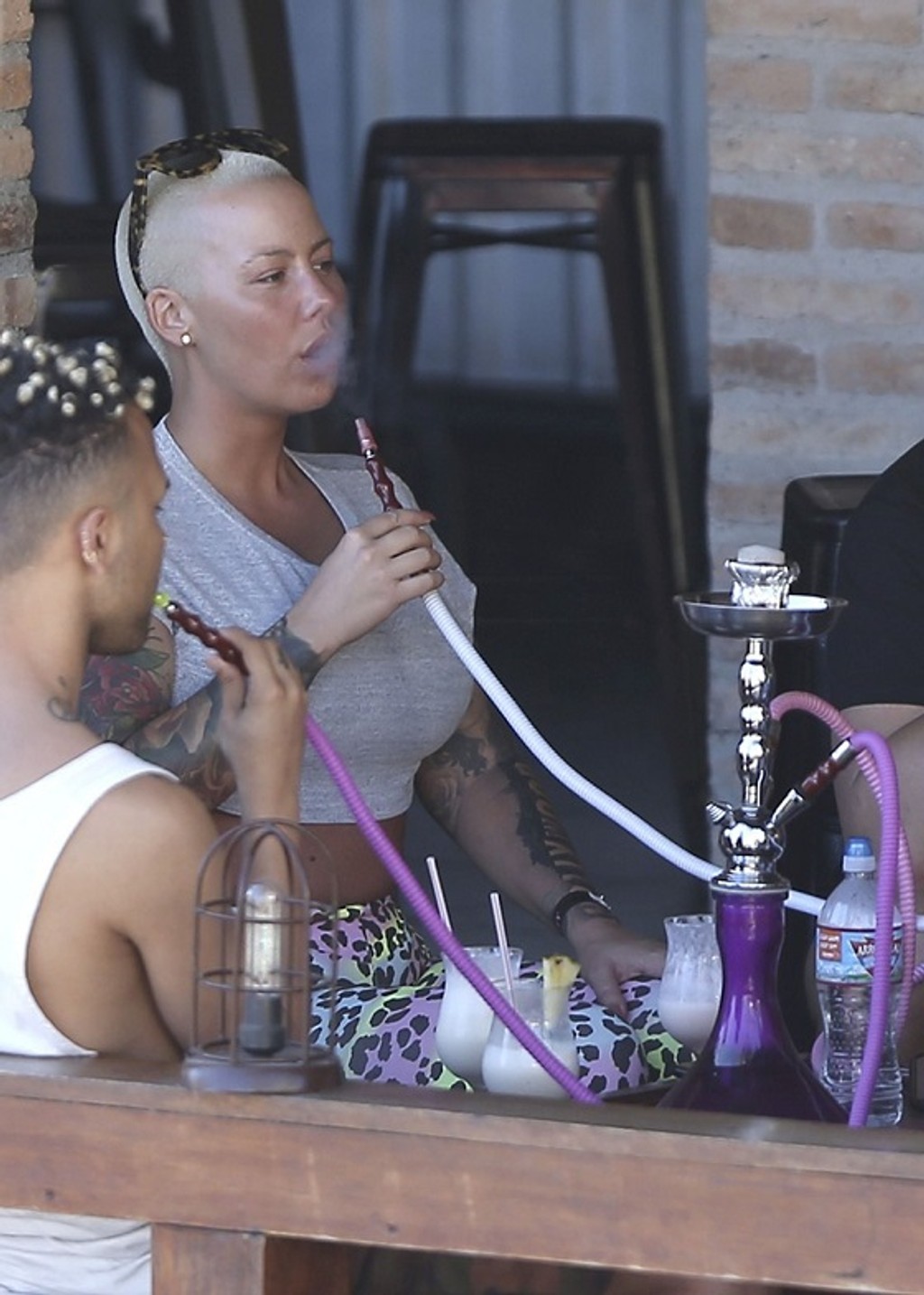 Ešte predtým, ako si užívala s partiou kamarátov v súkromnom bazéne na balkóne apartmánu, si zašla do miestneho baru. V krátkom sivom tričku a obtiahnutých legínach s leopardím vzorom si dopriala vodnú fajku.