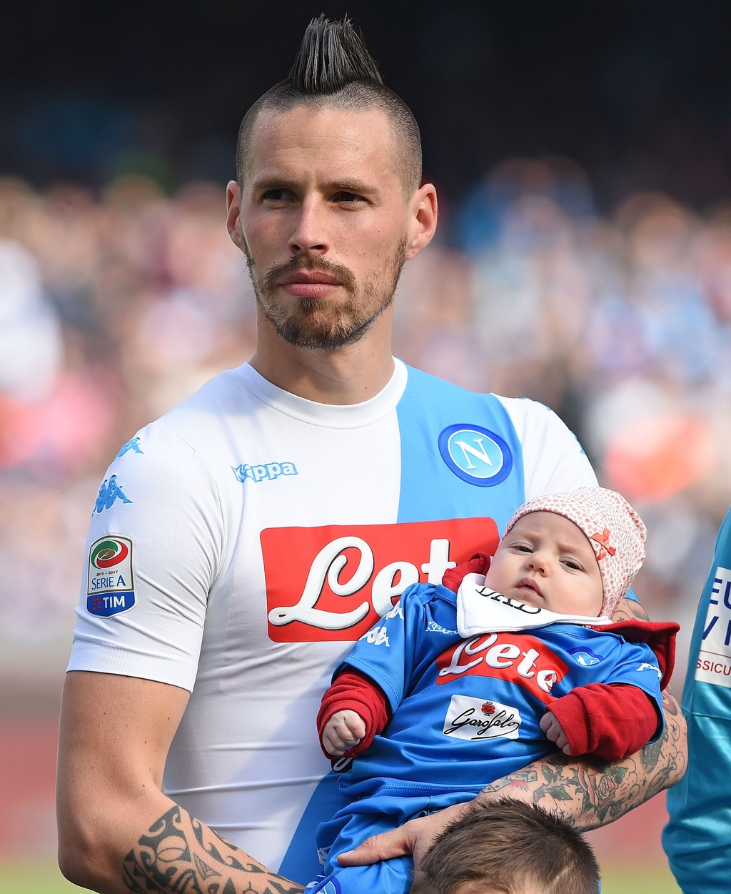 Hamšík sa pochválil svojím pokladom na nástupe pred nedeľným zápasom s Crotone v 28. kole talianskej Serie A. Malinká Melissa vyzerala spokojne. Dokonca si v otcovom náručí aj zdriemla.