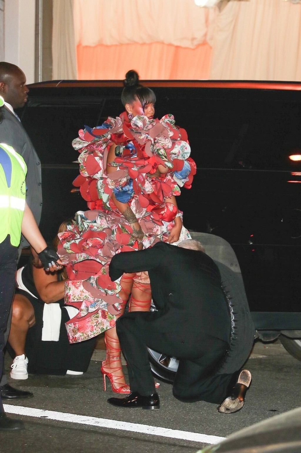 Viacerí sa zhodli, že práve 29-ročná barbadoská speváčka dokonale vystihla tému tohtoročného Met Gala. V odvážnych kvietkovaných šatách na seba strhla všetku pozornosť. Autorka hitu Love On The Brain si to pravdupovediac aj zaslúžila. Veď len navliecť sa do tejto komplikovanej róby muselo zabrať veľa času. Pomôcť jej museli aj traja asistenti, ktorí museli zaistiť, či je všetko na svojom mieste.