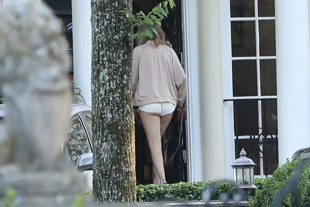 Odfotili ju, ako vchádza do domu v šortkách a bledom tope s neupravenými strapatými vlasmi. Po niekoľkých hodinách sa prezliekla, z domu vyšla v pásikovanom tope a vlasy mala v cope. Nasadla do auta, ktoré ju odviezlo na letisko, kde už na speváčku čakalo súkromné lietadlo.