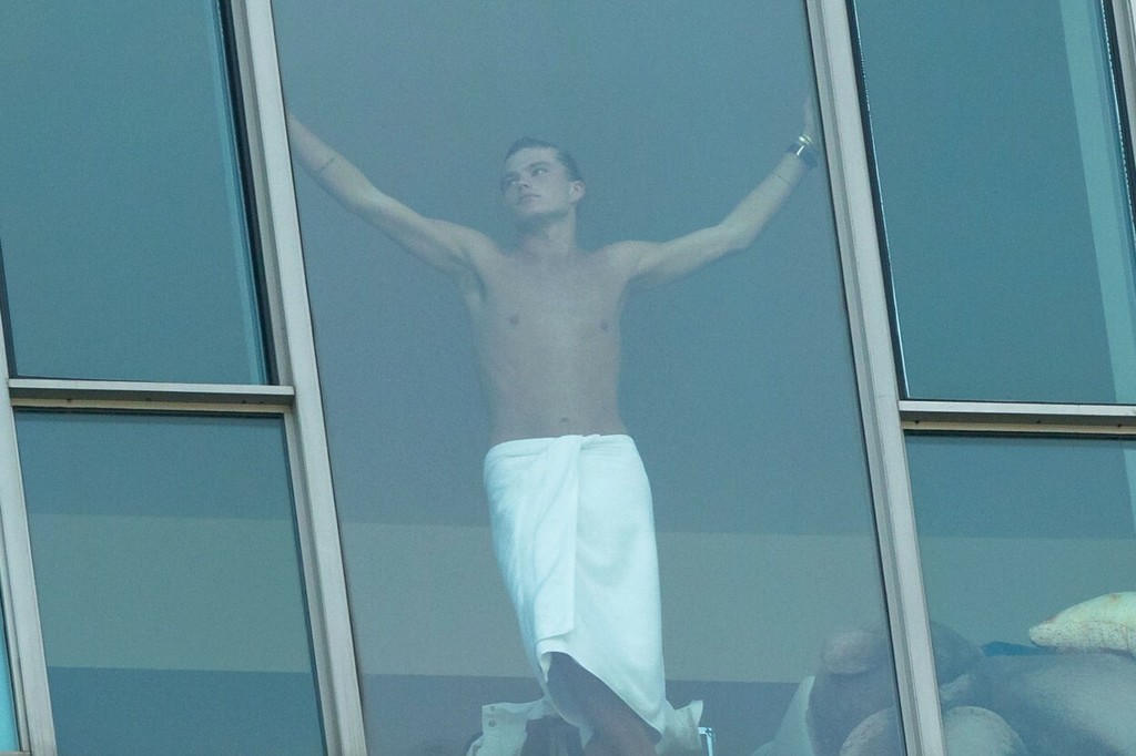 Bella mala oblečené len biele tielko bez podprsenky a čierne nohavičky brazílskeho strihu. Takto pózovala pred frajerom, ktorý sa pohyboval po obývačke len v bielom uteráku. Bruneta si asi neuvedomila, že ju vidieť z ulice a zadkom sa pritlačila o okno.