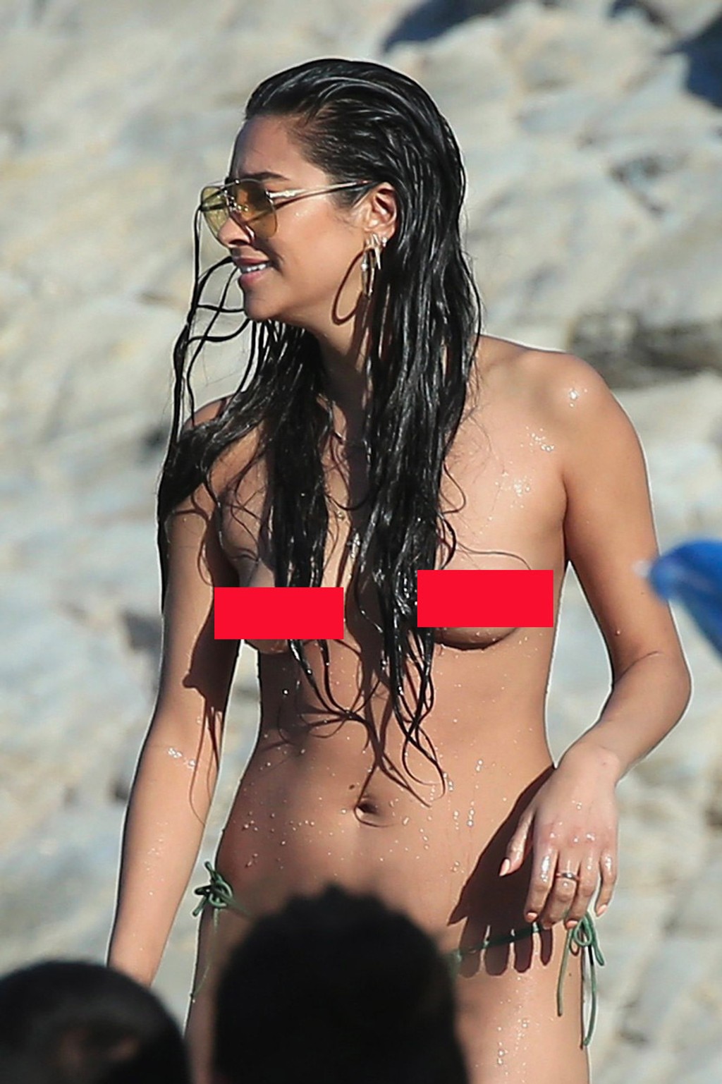 Na pláži ju prichytili bulvárni fotografi. Herečka sa s kamarátkou tak rozbláznila, že sa neskôr premávala po pláži hore bez a šla sa tak aj okúpať.
