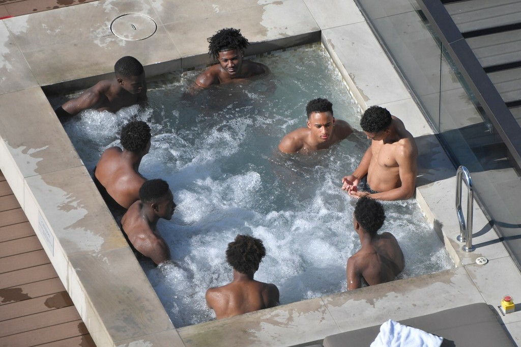 Potom ich čakal zaslúžený oddych. Využili vírivku v hoteli, pričom ich zachytili bulvárni fotografi. Niektorým z nich prítomnosť paparazziho neprekážala a pri vyzliekaní sa vôbec neostýchali. Ukázali sa tak nielen hore, ale aj dole bez.