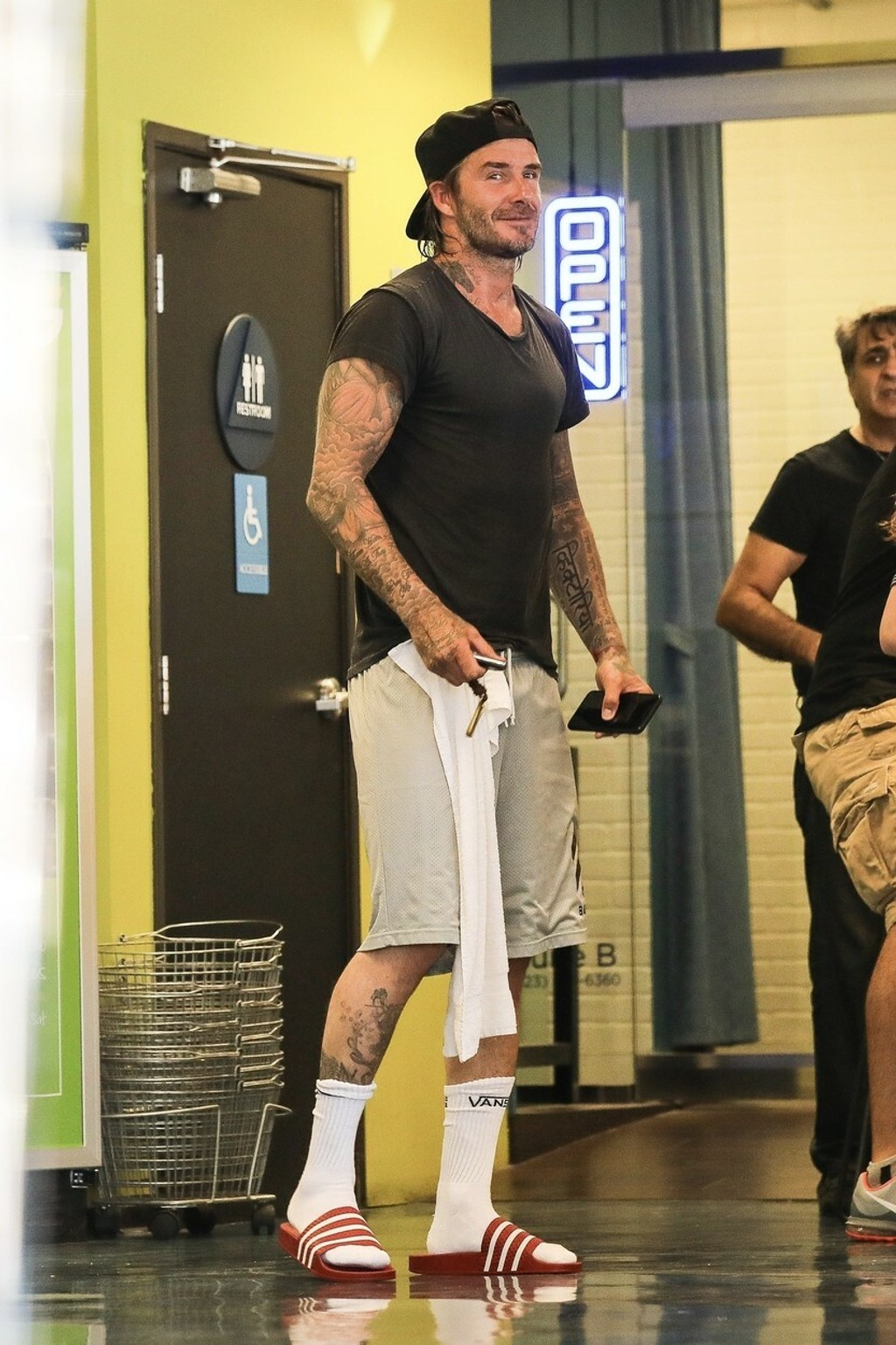 Bývalú futbalovú hviezdu a trendsettera odfotili po tréningu v Los Angeles. David mal oblečené športové kraťasy a tričko, na hlave šiltovku a na nohách šľapky s vysokými bielymi ponožkami. Evidentne mu bolo veľmi pohodlne, pretože sa tváril veľmi spokojne.