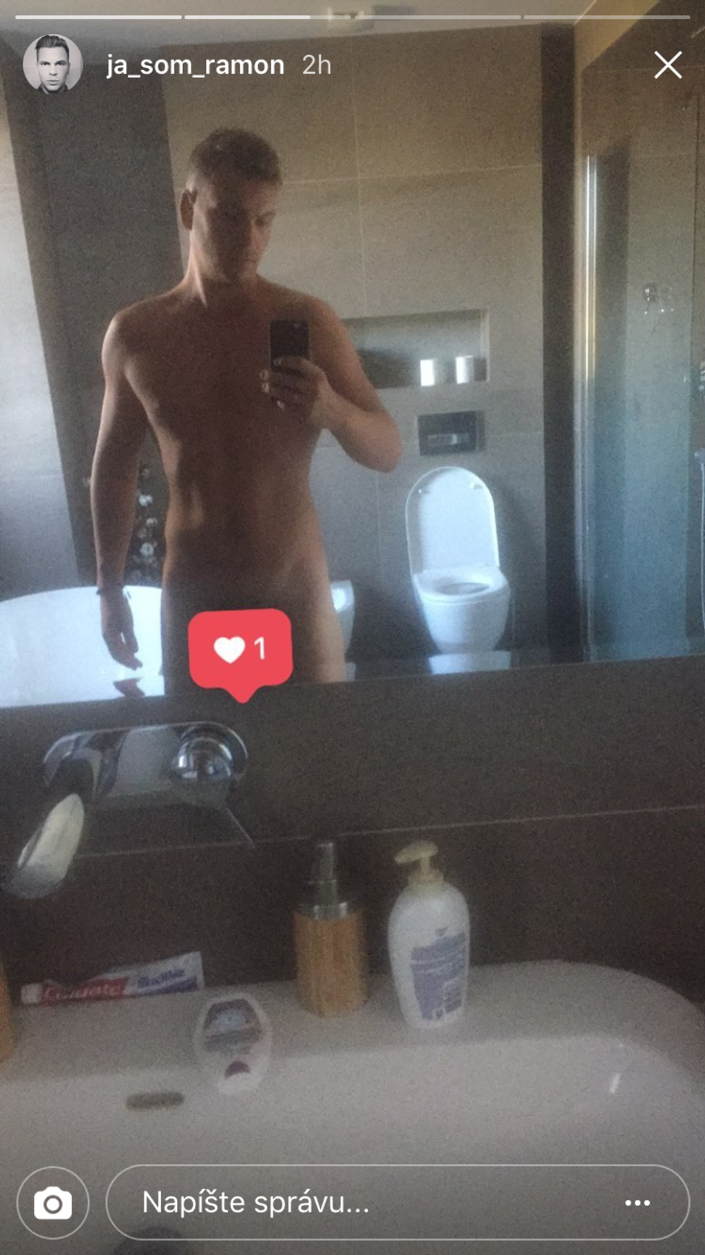 Spevák je na snímke úplne nahý a takto pózuje pred zrkadlom v kúpeľni. Prirodzenie mu ale zakrýva srdiečkový lajk, takže fanúšikovia neuvidia nič, čo by nemali.