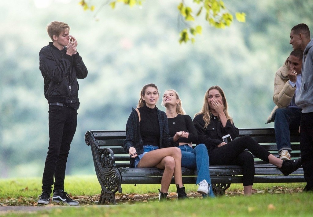 Súrodenci majú za sebou hektický týždeň módy v Londýne a počas neho si dopriali pauzu v parku. Presley si zapálil cigaretu predtým, ako sa venoval svojej sestre a ostatným kamarátom.
