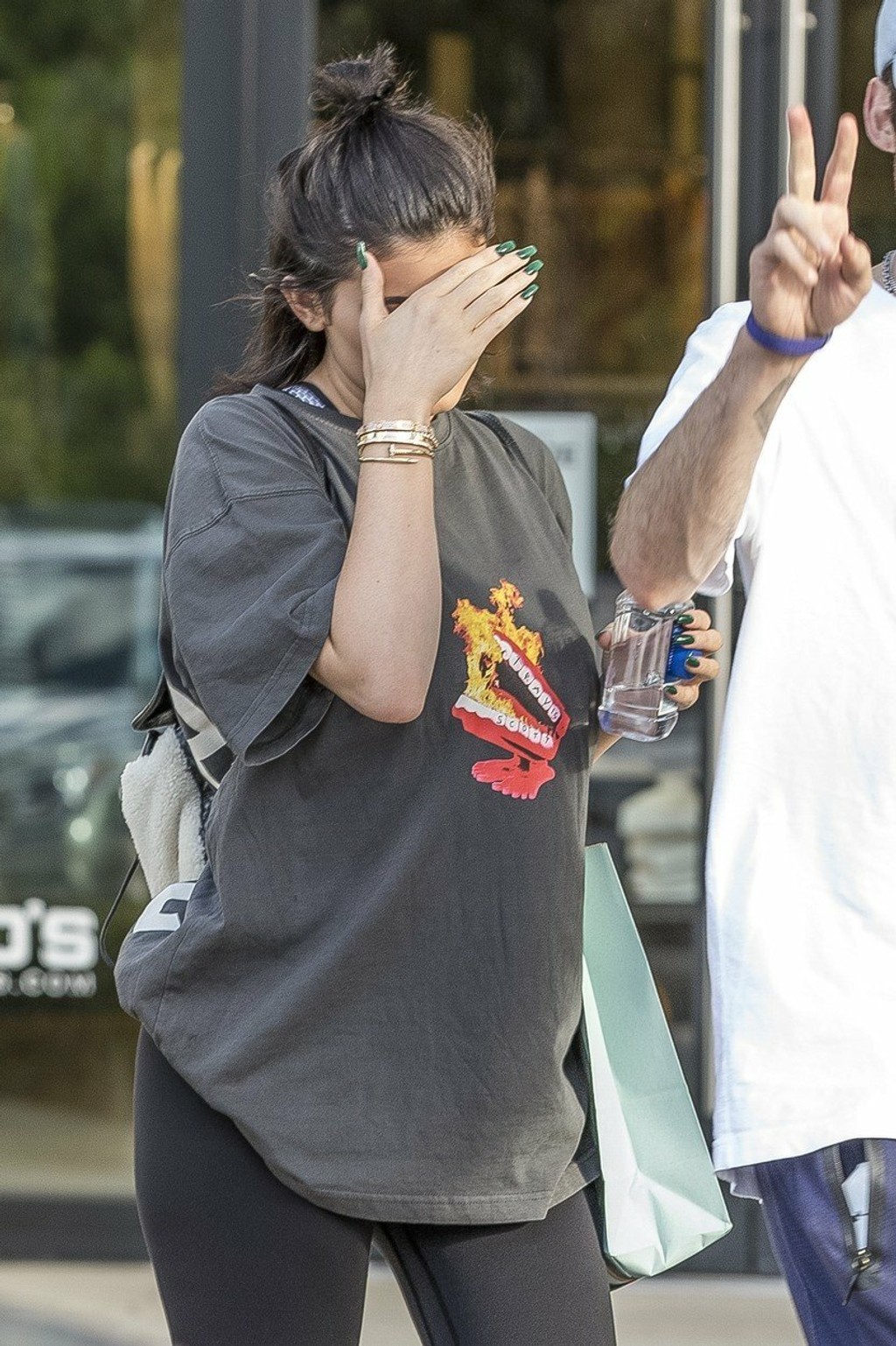 Najmladšej z klanu Kardashianok a Jenneriek sa už zaguľatilo bruško. Zatiaľ ho ale neukazuje. Na verejnosti nosí voľné zahaľujúce oblečenie. Na sociálnych sieťach stále zverejňuje archívne fotky, na ktorých má osí pás.