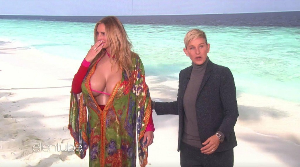 „Mala by som ich mať aspoň 51," narážala Julia na svoj vek. Našťastie, vtipná moderátorka jej hneď pohotovo poradila ako to napraviť. Herečku navliekla do umelého tela "Kim Kardashian" v bikinách a povedala jej, že keby vyzerala takto, určite by ju sledovalo viac ľudí. Julia mala totiž razom prsia o niekoľko čísel väčšie.