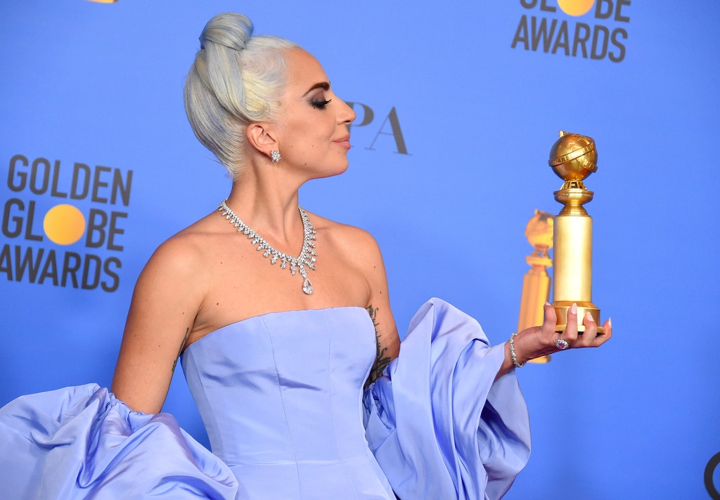 Lady Gaga, ktorá vyzerá ako Popoluška v modrom, síce nevyhrala v kategórii Najlepší ženský herecký výkon v dramatickom filme, ale sošku si spolu s ďalšími tvorcami odniesla za Najlepšiu pôvodnú pieseň (Shallow).
