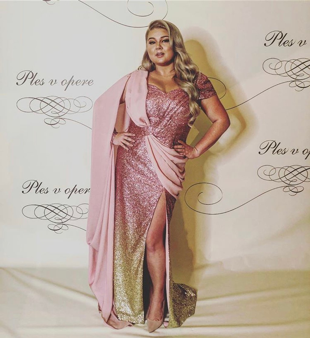 Na druhom mieste sa v našej ankete umiestnila moderátorka Farmy, herečka a komička Evelyn, ktorej ružové flitrové šaty od Milana Švingálu sadli ako uliate.