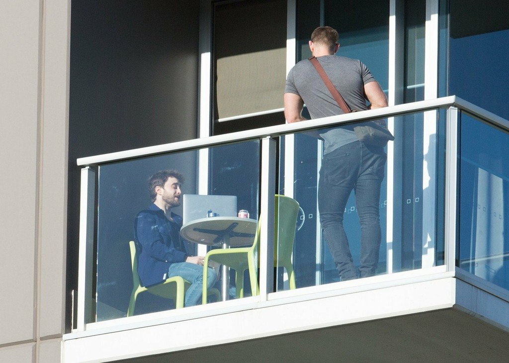 Dvadsaťdeväťročný herec a producent si v rámci pauzy od filmovačky doprial relax na balkóne. Filmovému Harrymu Potterovi bolo zjavne teplo, pretože sa stihol vyzliecť do trenírok a čo bude šokovať všetkých fanúšikov filmov o čarodejníkovi - fajčil cigaretu. Áno, Daniel Radcliffe fajčí!
