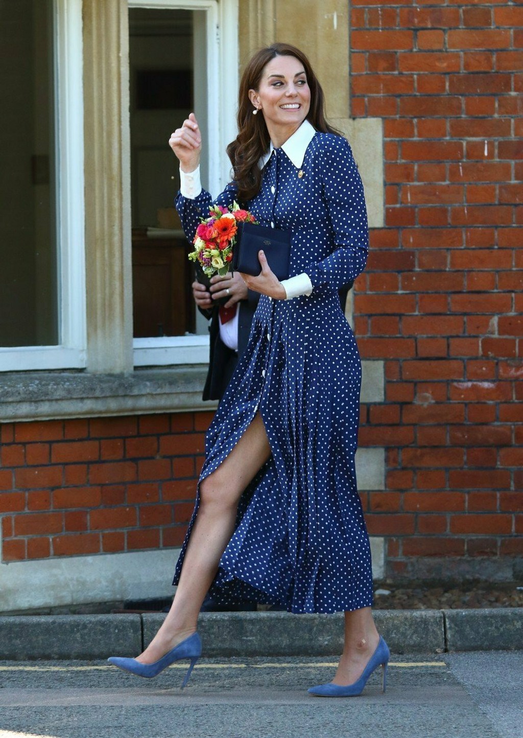 Bodkované šaty ukázali, že má aj po troch deťoch rovnako štíhlu postavu. Ich vysoký rozparok dokonca poodhalil aj jej krásne dlhé nohy. Tento pohľad sa fanúšikom vojvodkyne naozaj nenaskytá často, keďže musí aj pri obliekaní dbať na protokol.